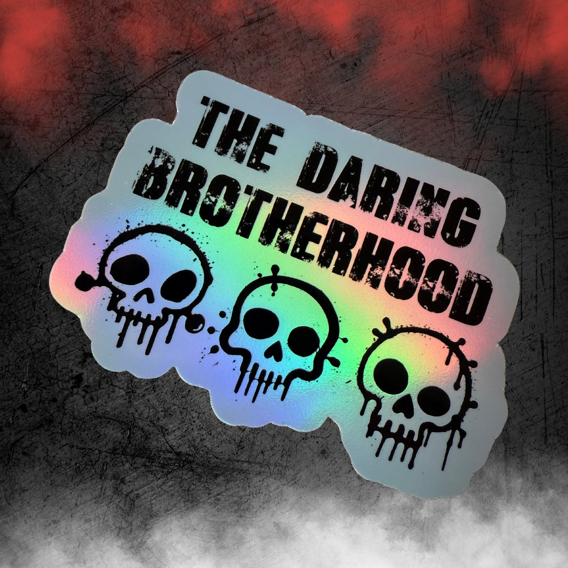 The Daring Brotherhood stickers, printer on premium quality holographic sticker paper.